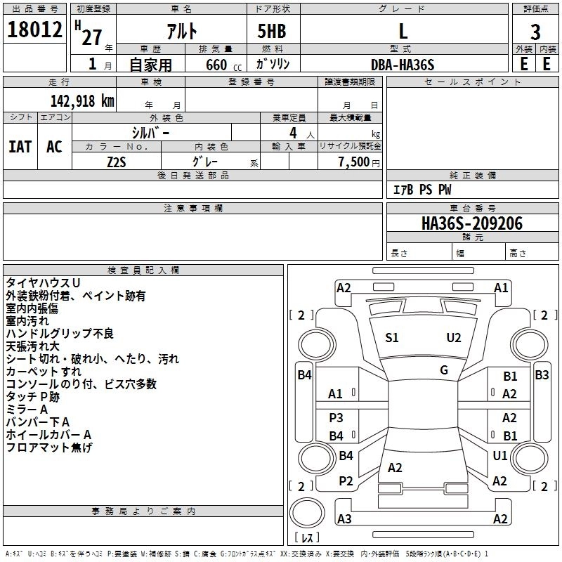 Год выпуска2015 Пробег 143 000 км КузовHA36S КомплектацияL