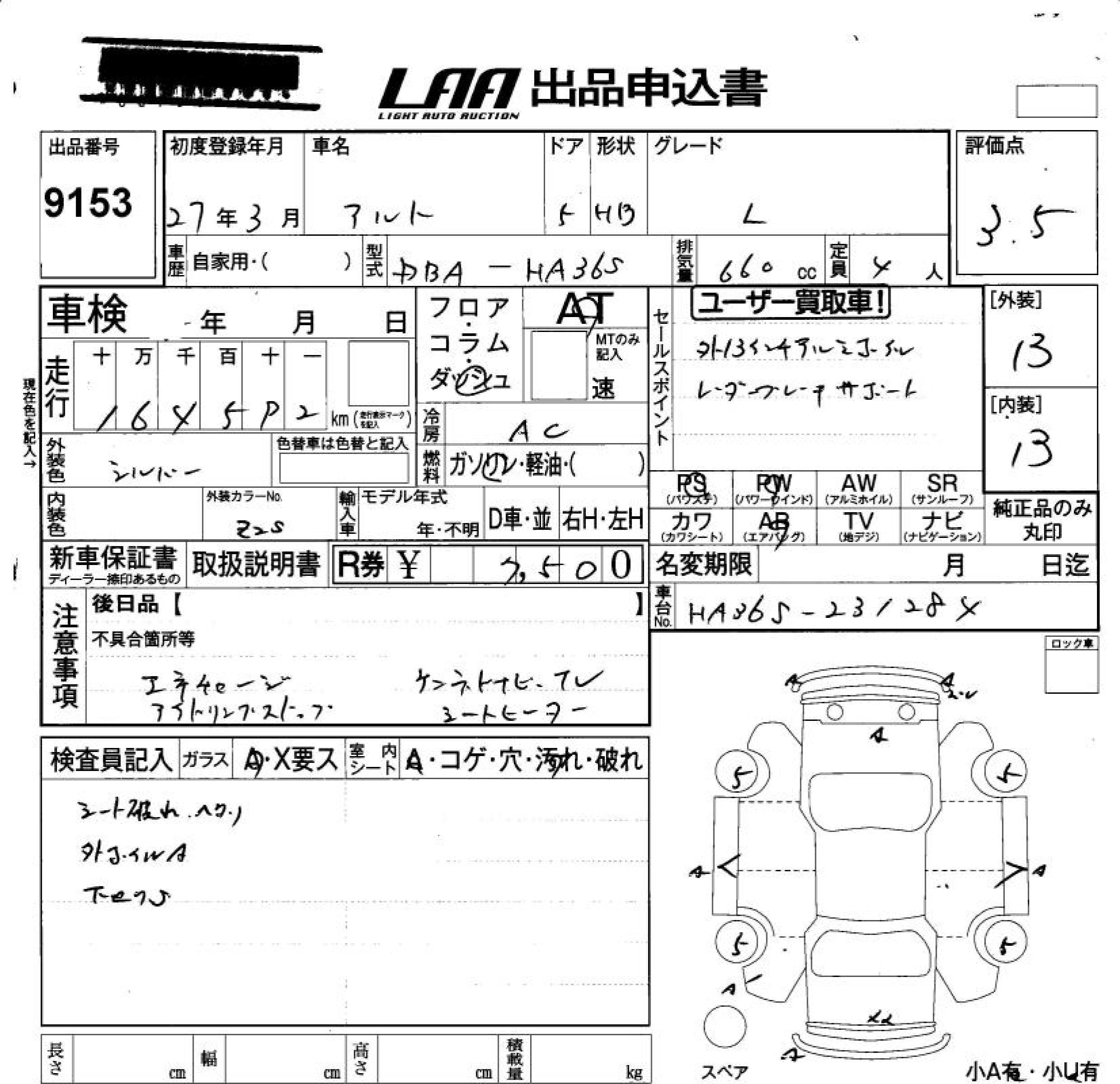 Год выпуска2015 Пробег 165 000 км КузовHA36S КомплектацияL