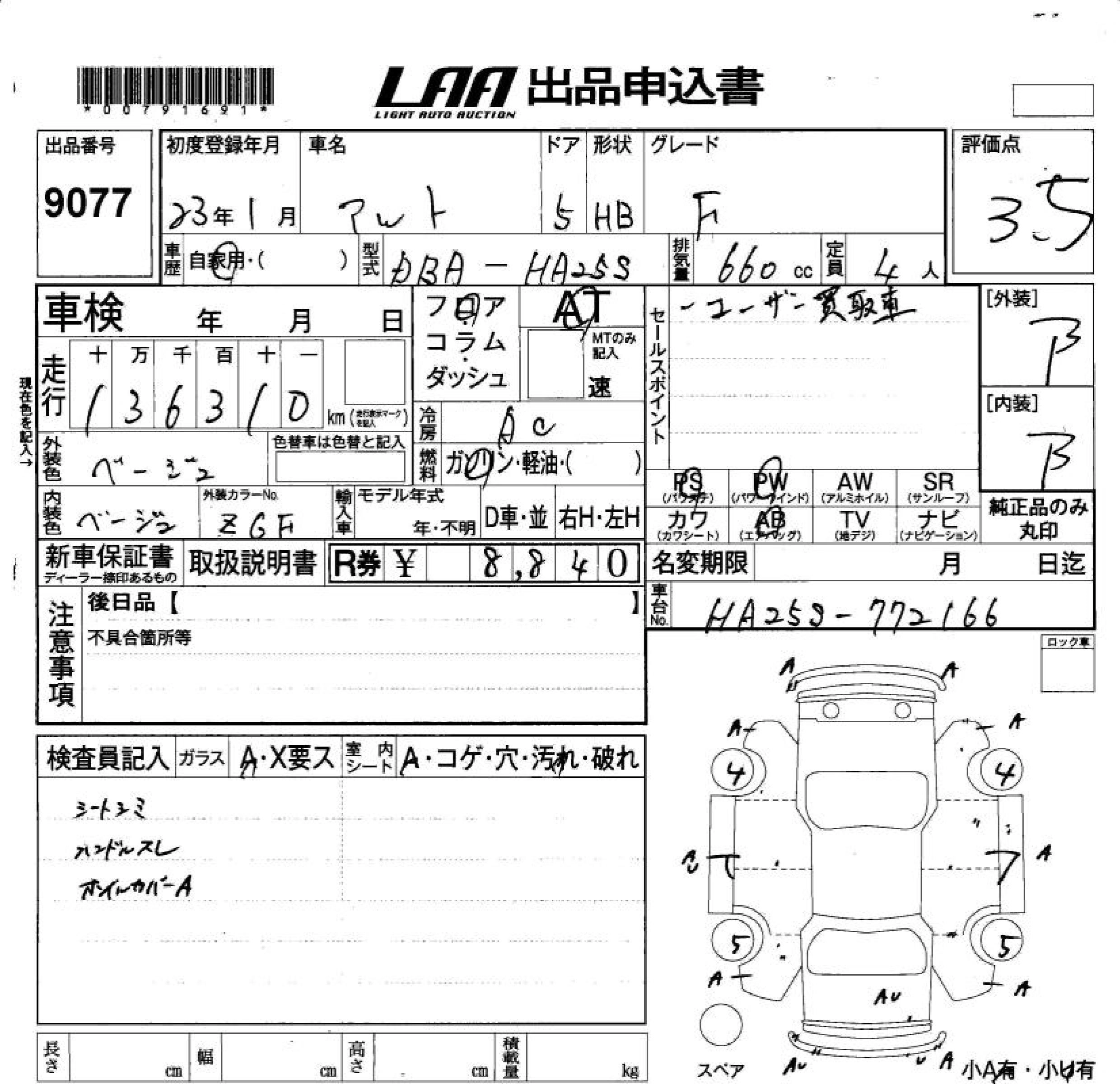 Год выпуска2011 Пробег 136 000 км КузовHA25S КомплектацияF