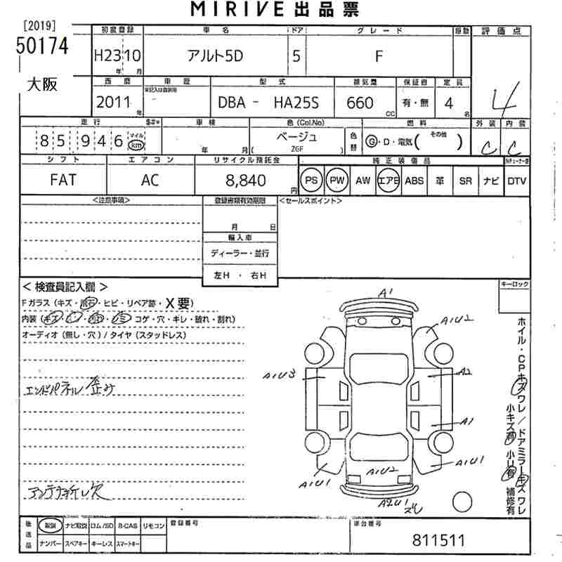 SUZUKI ALTO 2011 г., лот № 50174