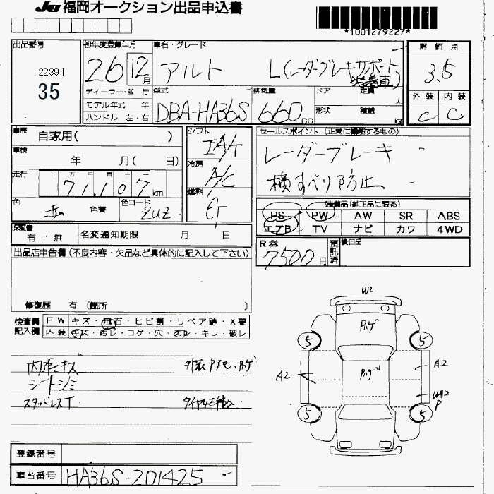 | F | DBA-HA36S | R06A | Full-time 4WD | 5AT | 658cc | 52ps(38kW)/6500rpm | AИ-92 | 975 240 | |