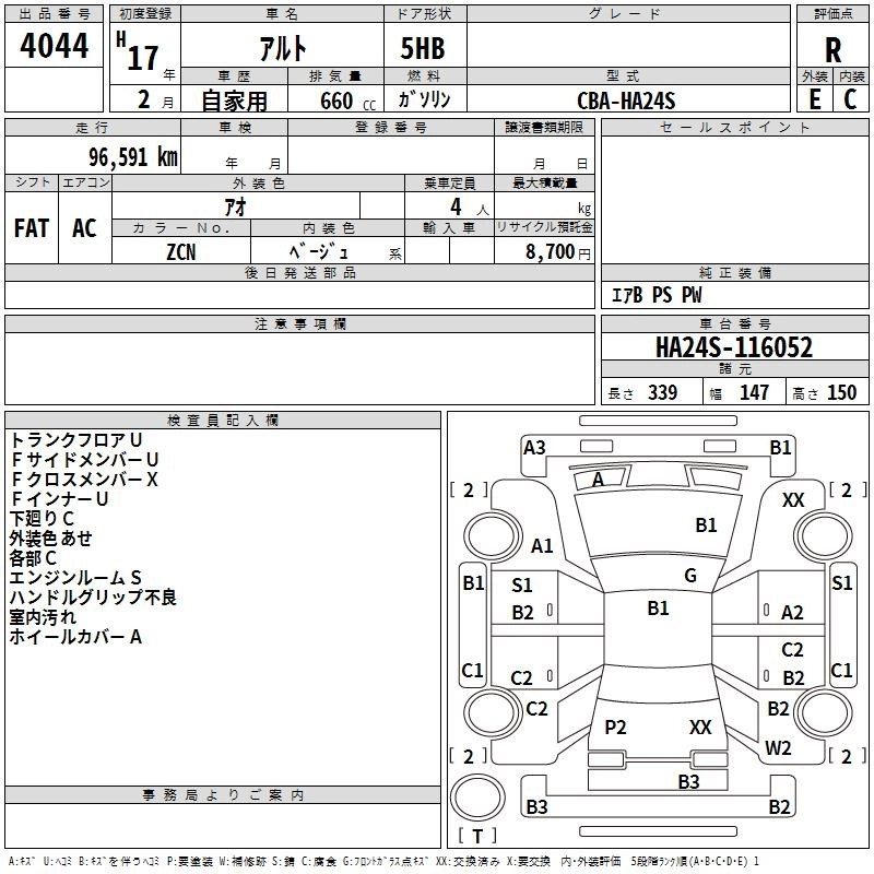| G SPECIAL | CBA-HA24S | K6A | Full-time 4WD | 3AT | 658cc | 54ps(40kW)/6500rpm | AИ-92 | 1 031 100 |