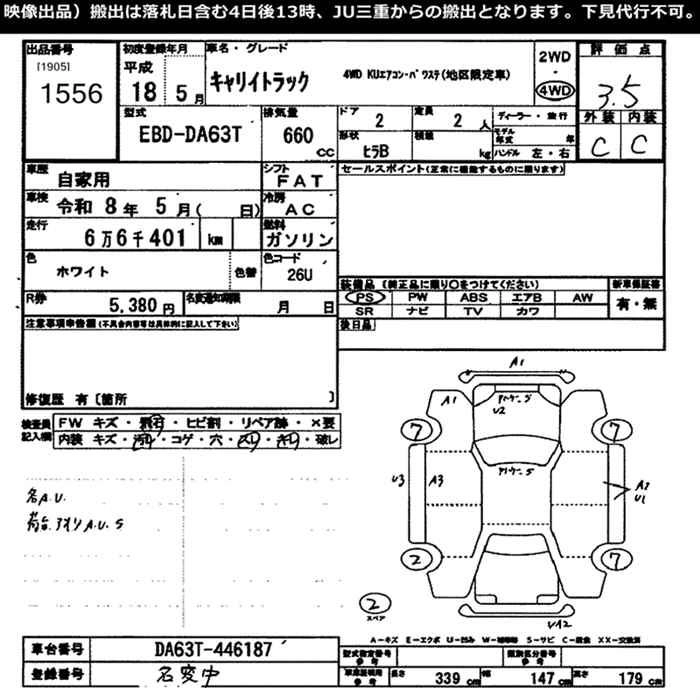 66 000 км КузовDA63T Комплектация4WD KU AIR CONDITIONER - POWER STEERING AREA LIMITATION CAR
