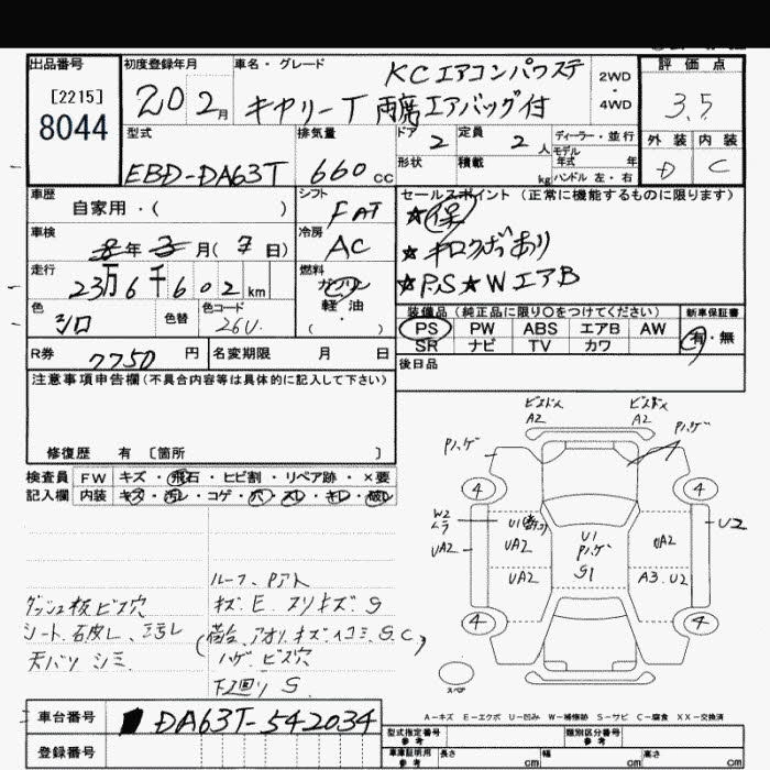 Год выпуска2008 Пробег 237 000 км КузовDA63T КомплектацияKC AIR CONDITIONER - POWER STEERING
