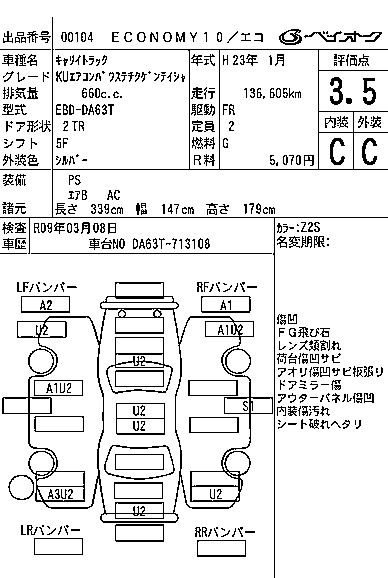 137 000 км КузовDA63T КомплектацияKU AIR CONDITIONER POWER STEERING AREA LIMITATION CAR