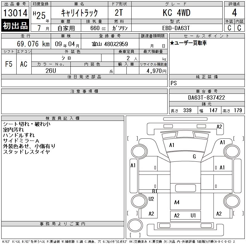 Год выпуска2013 Пробег 69 000 км КузовDA63T КомплектацияKC 4WD