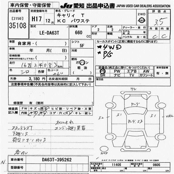 Год выпуска2005 Пробег 162 000 км КузовDA63T КомплектацияKC POWER STEERING 4WD