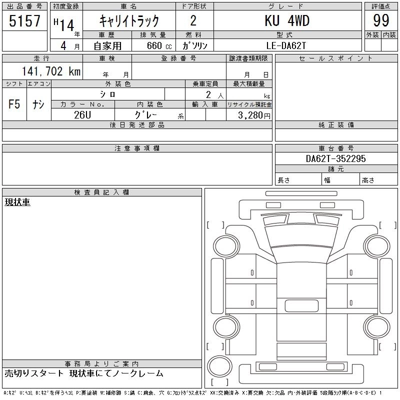 Год выпуска2002 Пробег 142 000 км КузовDA62T КомплектацияKU 4WD