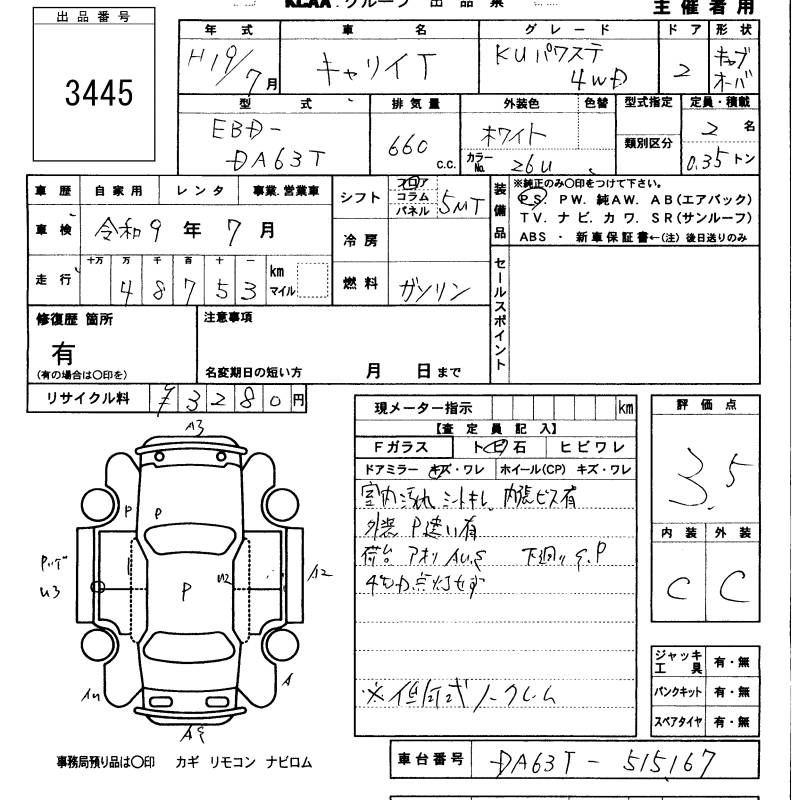 Год выпуска2007 Пробег 49 000 км КузовDA63T КомплектацияKU POWER STEERING 4WD