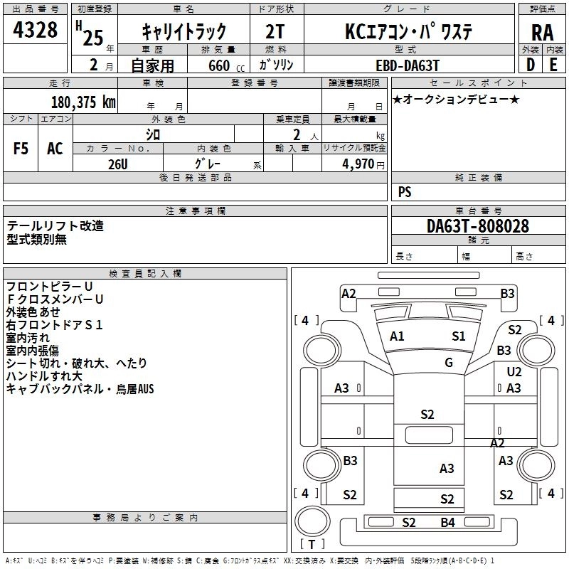 Год выпуска2013 Пробег 180 000 км КузовDA63T КомплектацияKC AIR CONDITIONER * POWER STEERING