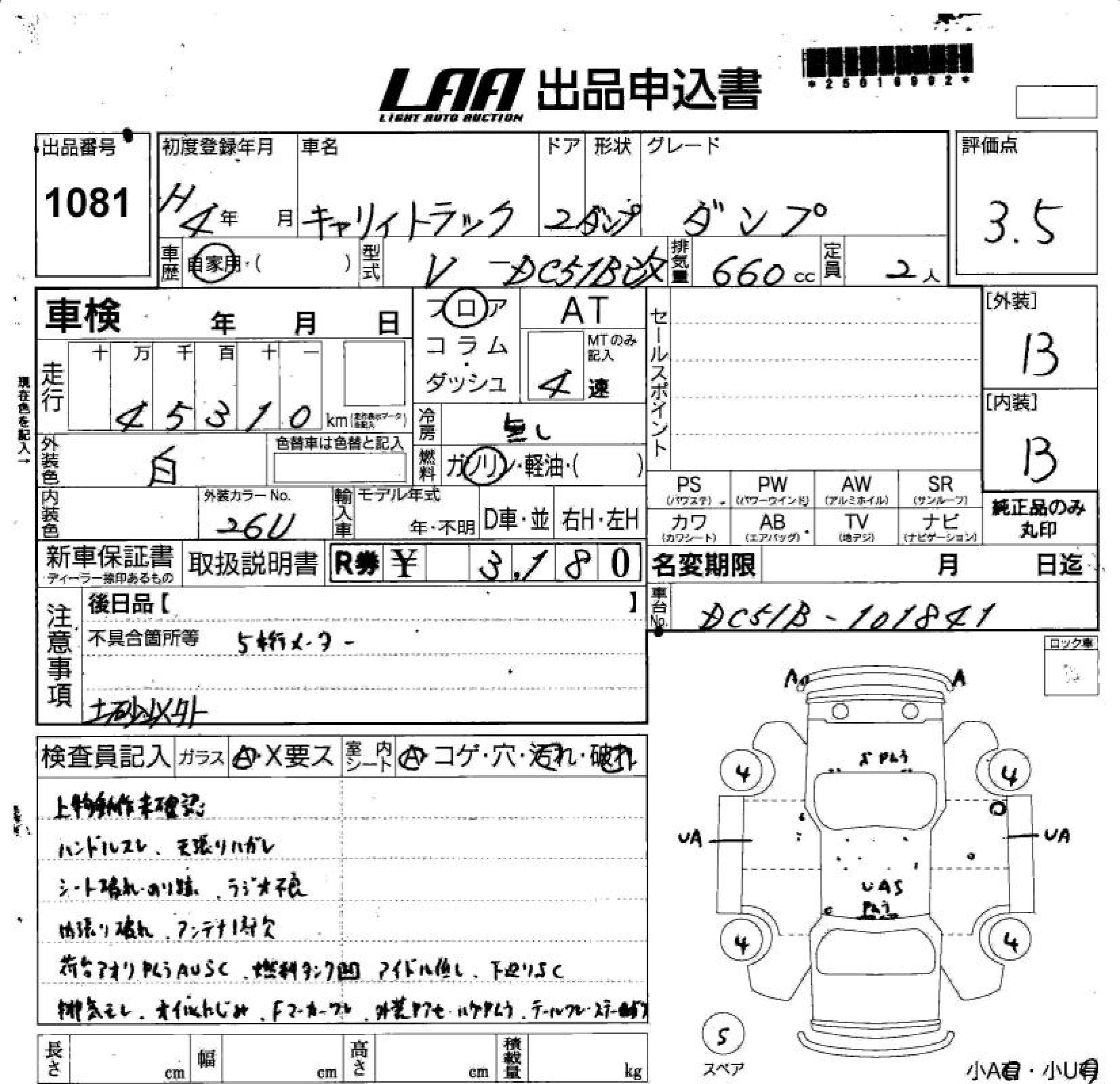 Год выпуска1992 Пробег 45 000 км КузовDC51B Комплектация DUMP