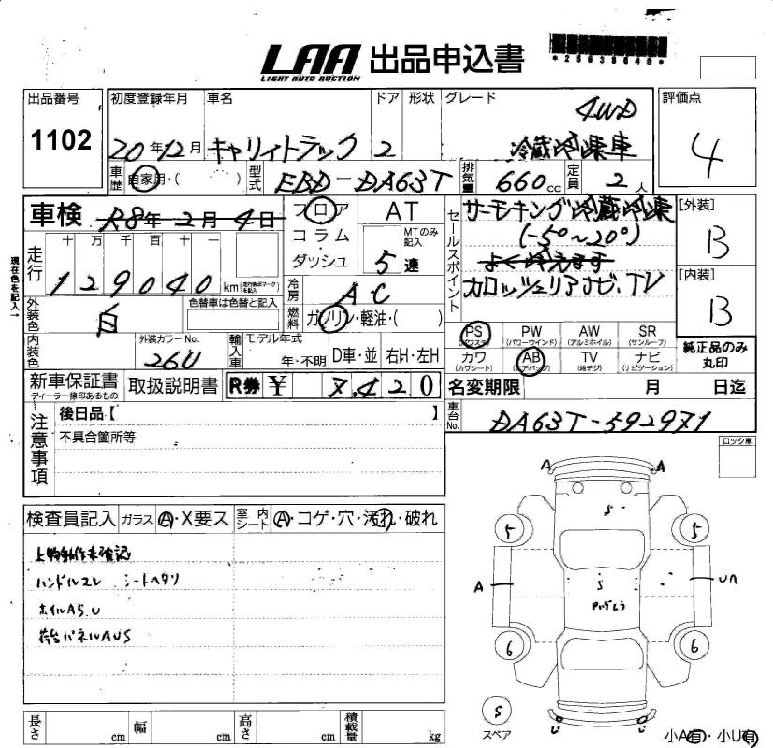 Год выпуска2008 Пробег 129 000 км КузовDA63T Комплектация CHILLING REFRIGERATOR 4WD