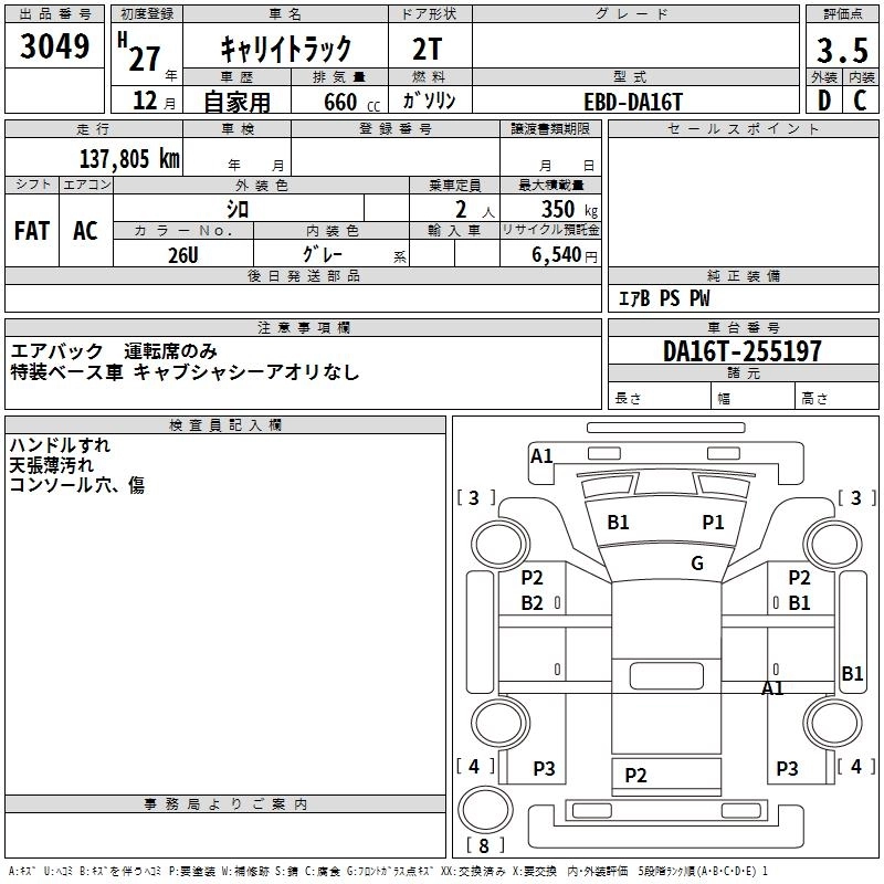 SUZUKI CARRY TRUCK 2015 г., лот № 3049