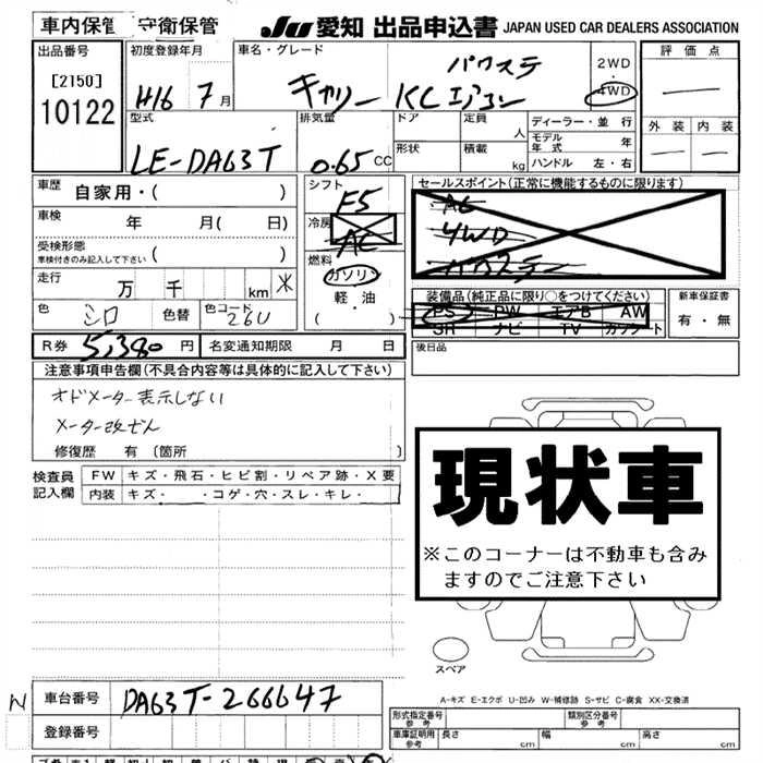Год выпуска2004 КузовDA63T КомплектацияKC AIR CONDITIONER POWER STEERING 4WD