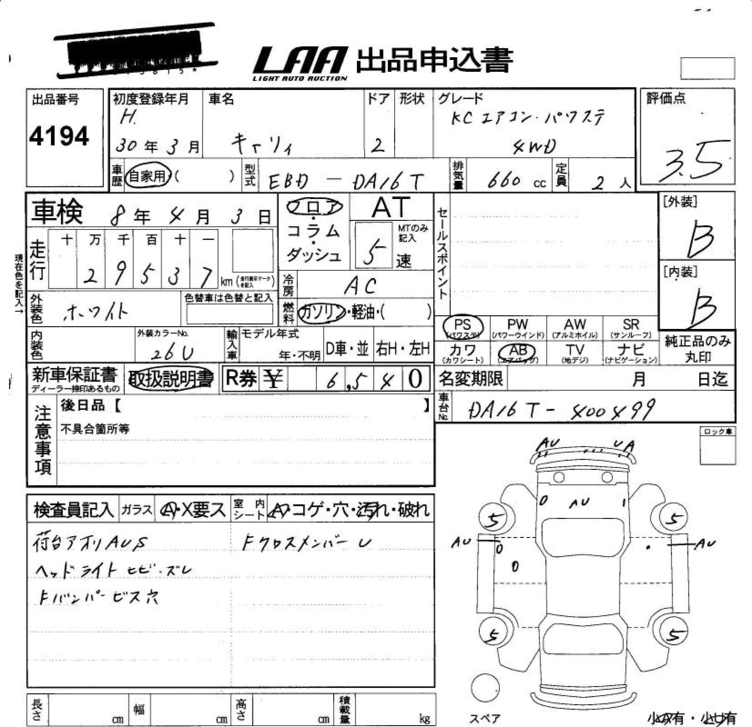 30 000 км КузовDA16T КомплектацияKC AIR CONDITIONER * POWER STEERING 4WD