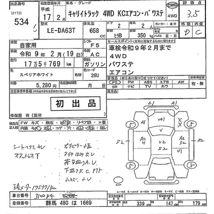 176 000 км КузовDA63T Комплектация4WD KC AIR CONDITIONER - POWER STEERING