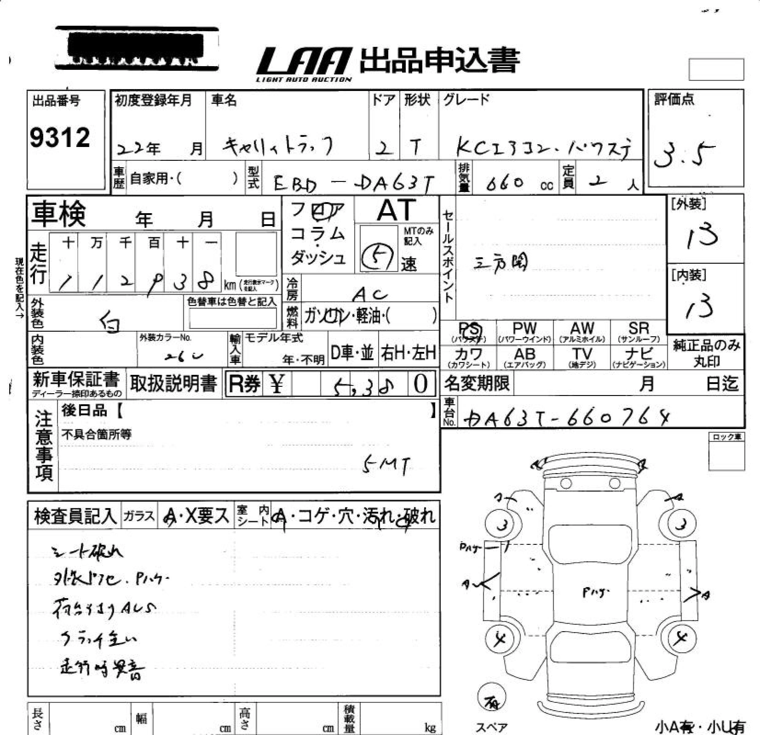 Год выпуска2010 Пробег 113 000 км КузовDA63T КомплектацияKC AIR CONDITIONER * POWER STEERING