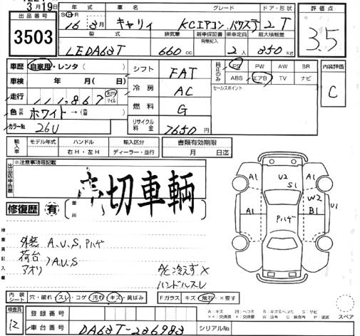 Год выпуска2004 Пробег 111 000 км КузовDA63T КомплектацияKC AIR CONDITIONER * POWER STEERING