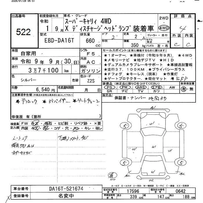 Год выпуска2019 Пробег 37 000 км КузовDA16T Комплектация4WD SUPER CARRY X