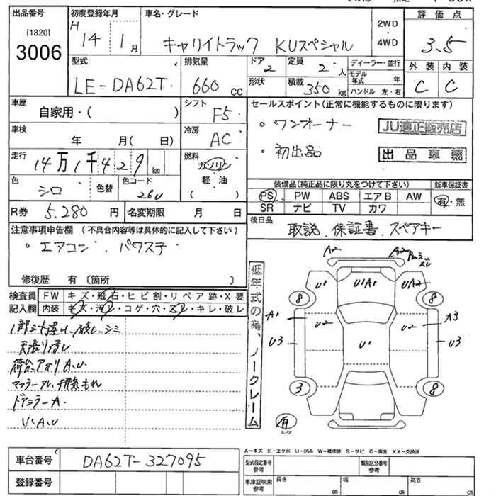 Год выпуска2002 Пробег 141 000 км КузовDA62T КомплектацияKU SPECIAL