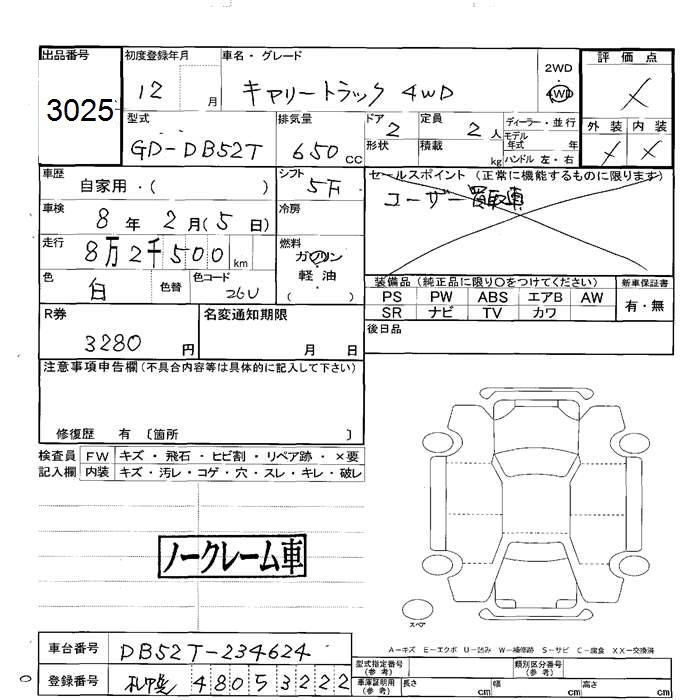 Статус выставлен на аукцион Лот 3025 Аукцион JU Hokkaido Дата аукциона 30.01.2026