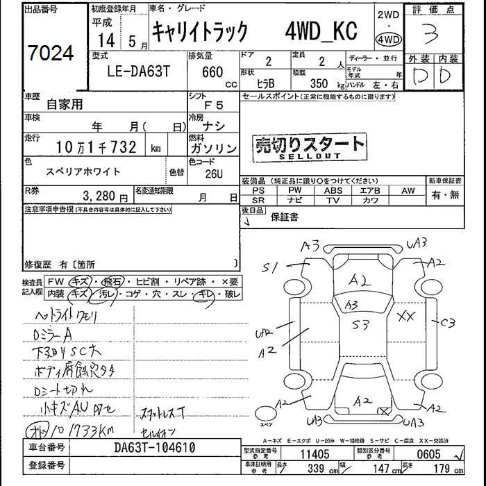 Год выпуска2002 Пробег 102 000 км КузовDA63T Комплектация4WD KC