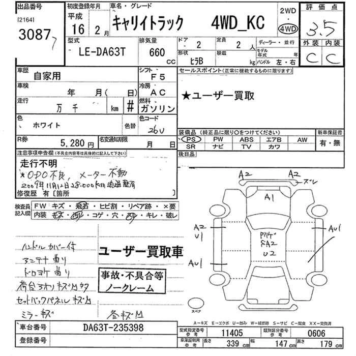 Год выпуска2004 КузовDA63T Комплектация4WD KCULI YELLOW LI