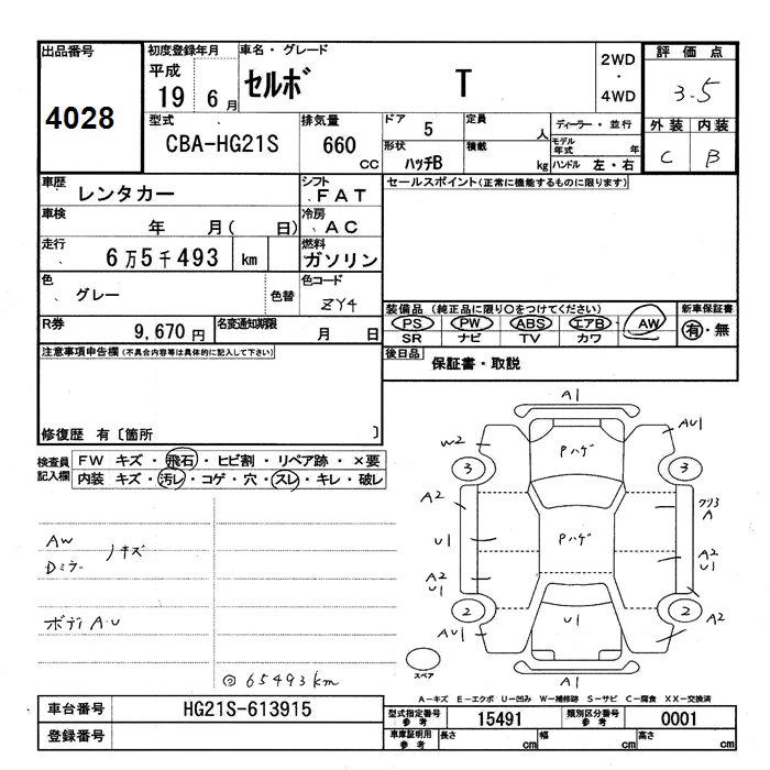 | T | CBA-HG21S | K6A | FF | 4AT | 658cc | 60ps(44kW)/6000rpm | AИ-92 | 1 142 400 | |