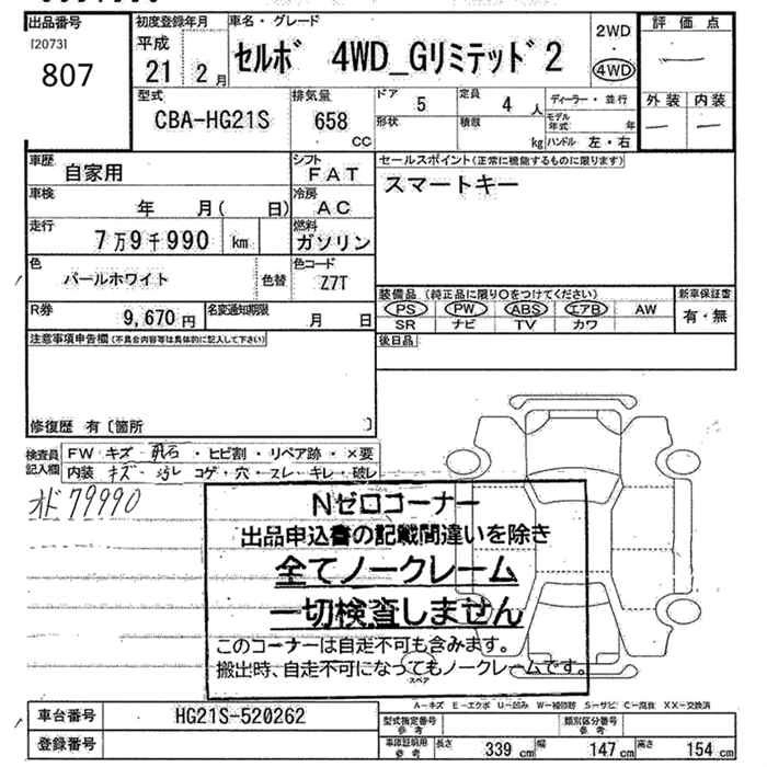 | G | DBA-HG21S | K6A | FF | 4AT | 658cc | 54ps(40kW)/6500rpm | AИ-92 | 995 400 | |
