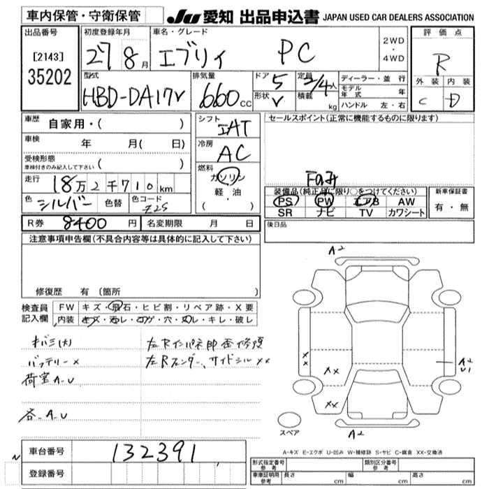 SUZUKI EVERY VAN 2015 г., лот № 35202