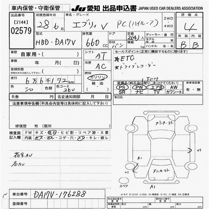 SUZUKI EVERY VAN 2016 г., лот № 2579