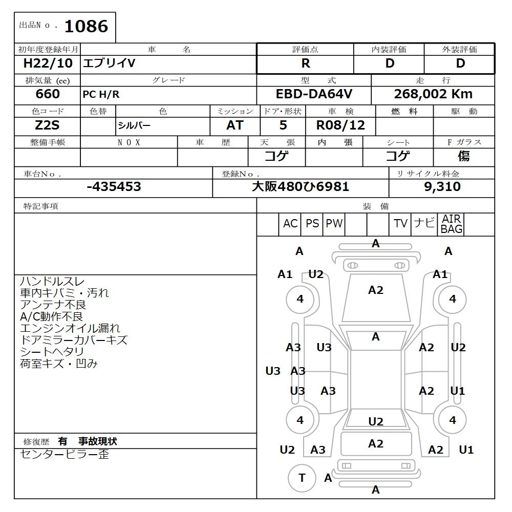 Статус выставлен на аукцион Лот 1086 Аукцион Nissan Osaka Дата аукциона 16.03.2026