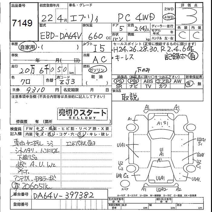 Год выпуска2010 Пробег 206 000 км КузовDA64V Комплектация4WD PC HIGH ROOF