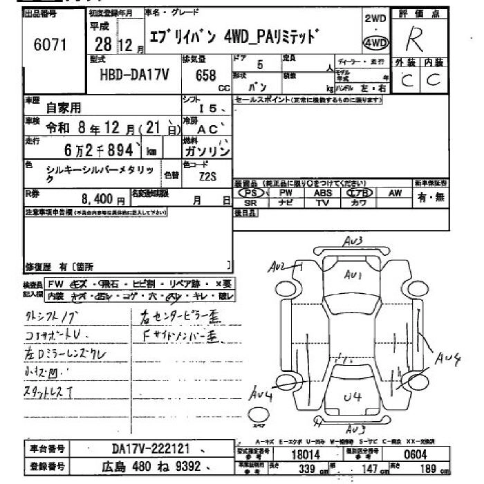 SUZUKI EVERY VAN 2016 г., лот № 6071