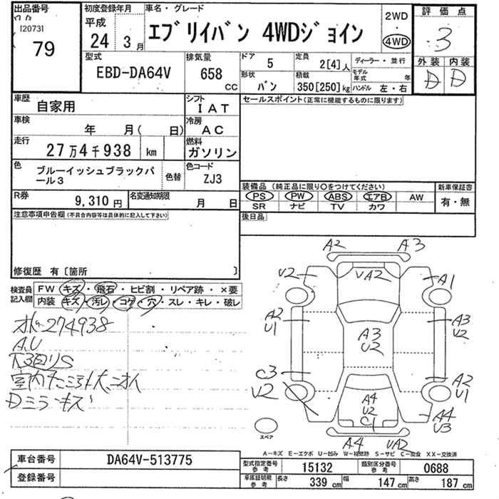Год выпуска2012 Пробег 275 000 км КузовDA64V Комплектация4WD JOIN