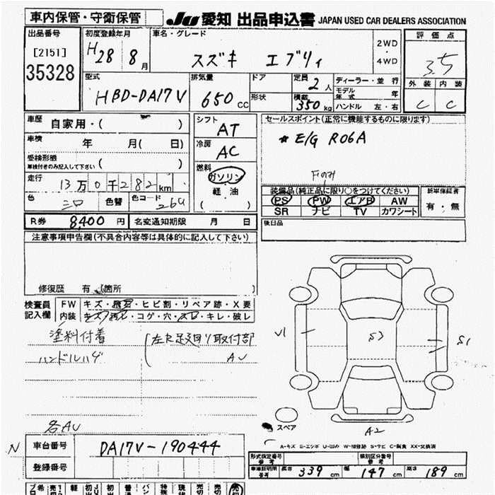SUZUKI EVERY VAN 2016 г., лот № 35328