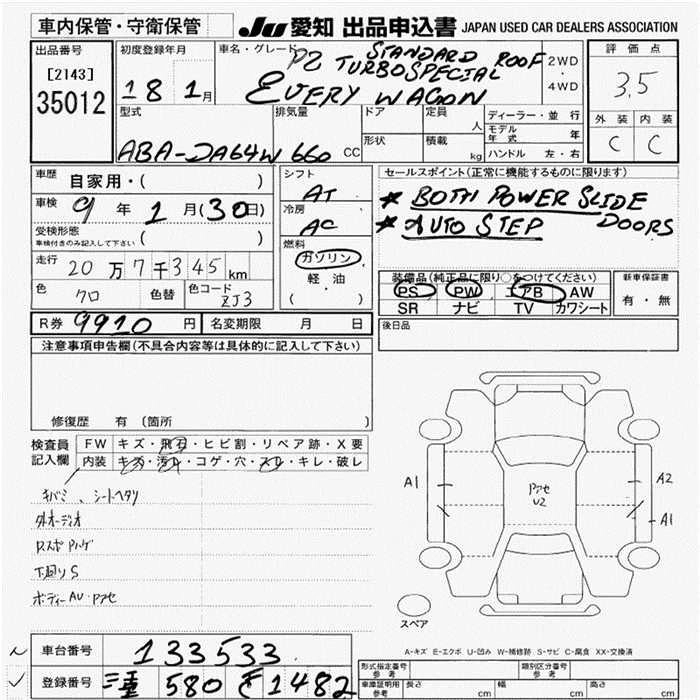 | PZ TURBO SPECIAL | ABA-DA64W | K6A | Full-time 4WD | 4AT | 658cc | 64ps(47kW)/6500rpm | AИ-92 | 1 659 000 | |