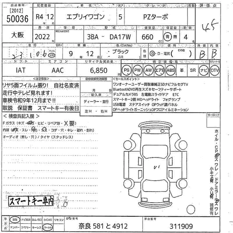 SUZUKI EVERY WAGON 2022 г., лот № 50036