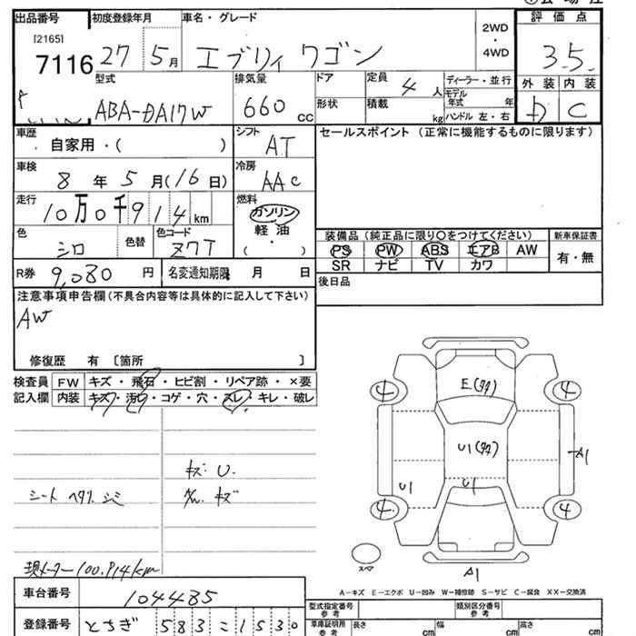 Комплектации для SUZUKI EVERY WAGON
