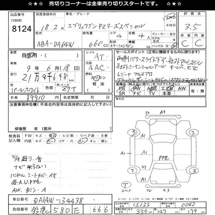 | JP TURBO | ABA-DA64W | K6A | Full-time 4WD | 4AT | 658cc | 64ps(47kW)/6500rpm | AИ-92 | 1 470 000 | |