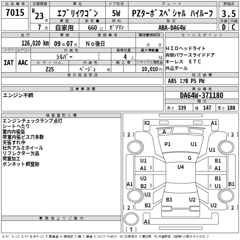 Год выпуска2011 Пробег 126 000 км КузовDA64W КомплектацияPZ TURBO SPECIAL HIGH ROOF