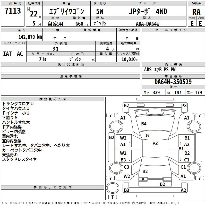 | JP TURBO | ABA-DA64W | K6A | FR | 4AT | 658cc | 64ps(47kW)/6000rpm | AИ-92 | 1 354 500 | |