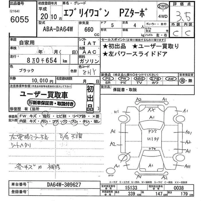 | JP TURBO | ABA-DA64W | K6A | FR | 4AT | 658cc | 64ps(47kW)/6500rpm | AИ-92 | 1 354 500 | |
