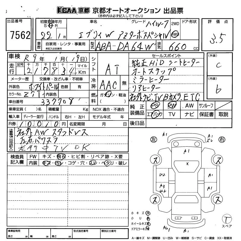 | PZ TURBO SPECIAL | ABA-DA64W | K6A | Full-time 4WD | 4AT | 658cc | 64ps(47kW)/6000rpm | AИ-92 | 1 690 500 | |
