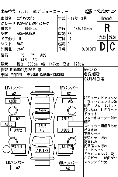 | JP | ABA-DA64W | K6A | FR | 5MT | 658cc | 49ps(36kW)/5800rpm | AИ-92 | 1 160 250 |