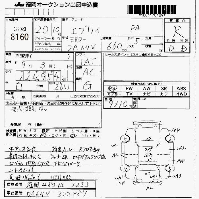| PA | EBD-DA64V | K6A | Part-time 4WD | 5MT | 658cc | 49ps(36kW)/5800rpm | AИ-92 | 1 005 900 | |