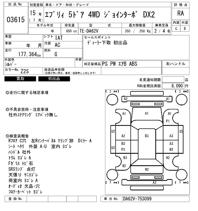 | PU | UE-DA62V | K6A | FR | 3AT | 658cc | 49ps(36kW)/5800rpm | AИ-92 | 928 000 | |