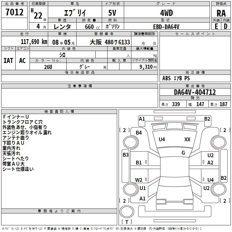 PC EBD-DA64V K6A FR 5MT 658cc 49ps(36kW)/5800rpm AИ-92 963 900