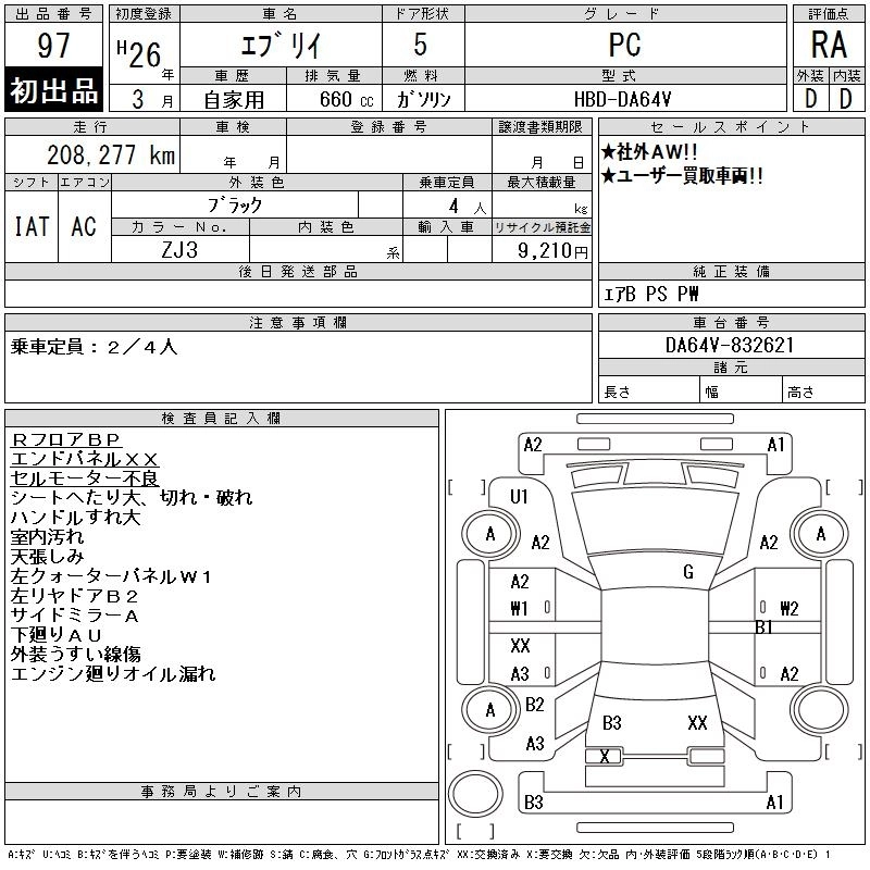 | PC | HBD-DA64V | K6A | Part-time 4WD | 3AT | 658cc | 49ps(36kW)/5800rpm | AИ-92 | 1 215 000 | |