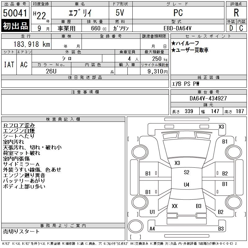 | PA | EBD-DA64V | K6A | Part-time 4WD | 5MT | 658cc | 49ps(36kW)/5800rpm | AИ-92 | 1 005 900 | |